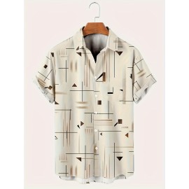 Men's Street Style Trendy Smile Face Pattern Short Sleeve Lapel Shirt for Summer Outdoor Wear